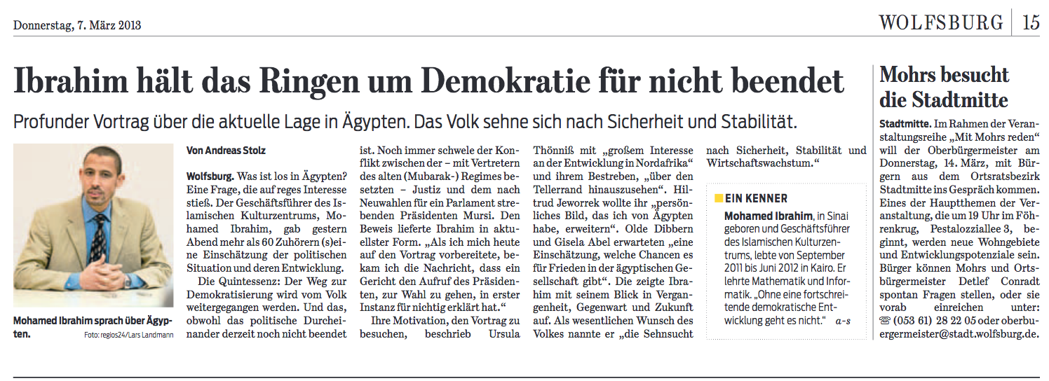 Die gegenseitige Beratung ist ein wichtiges Prinzip im Islam, so sagt Allah im Koran zu seinem Propheten: „Und berate dich mit ihnen in allen Angelegenheiten von öffentlichem Interesse!“ (Koran 03:159) An andere Stelle beschreibt Allah die Gläubigen so, dass „deren Regel (in allen Angelegenheiten von allgemeinem Interesse) Beratung untereinander ist.“ (Koran 42:38). Entsprechend hat der Prophet (s) gesagt: „Zur Religion gehört die gegenseitige Beratung bzw. der gute Ratschlag!“